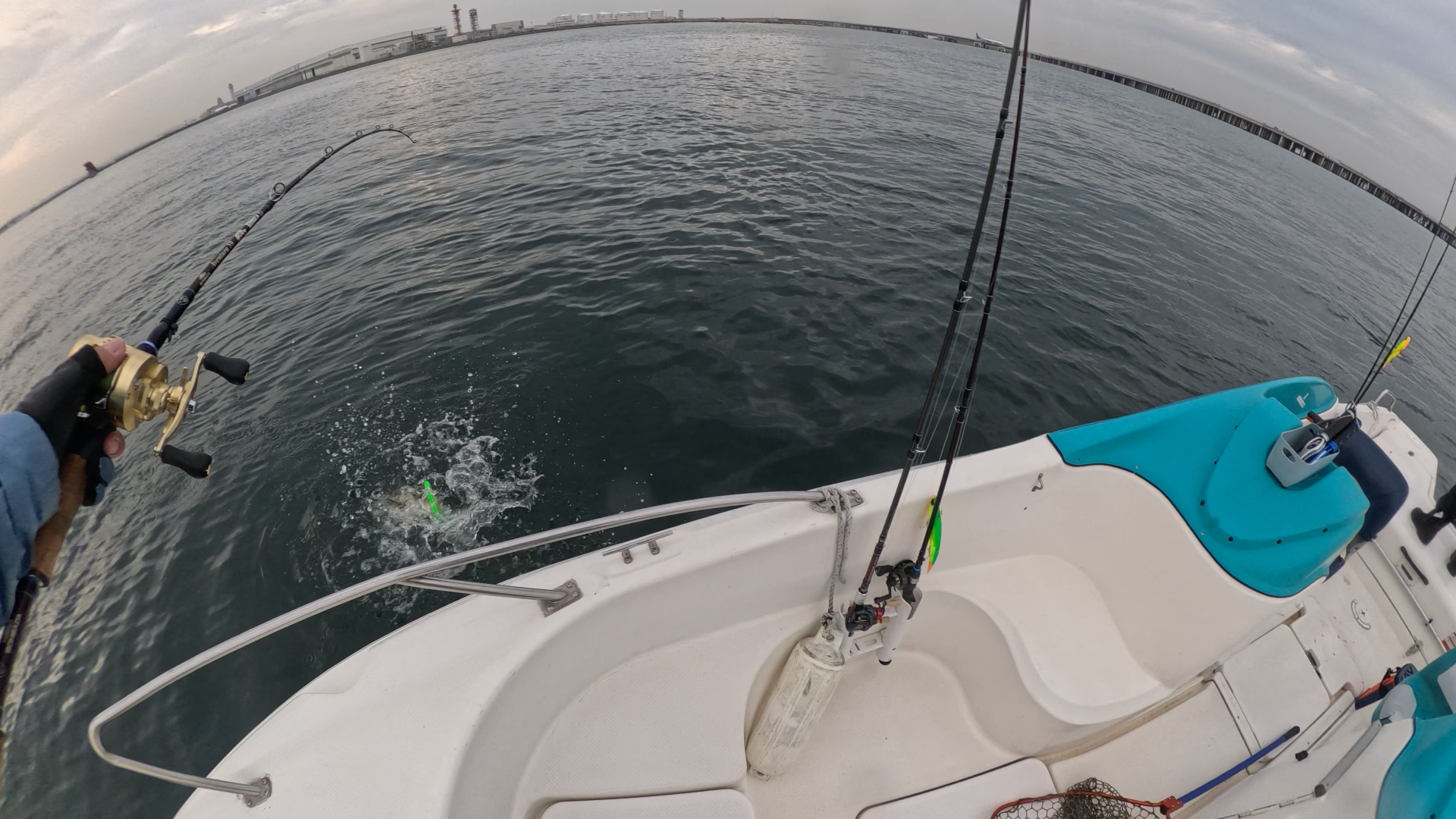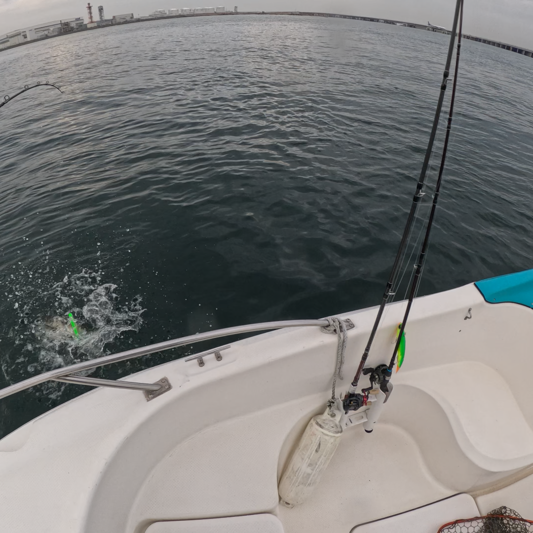 3時を回った頃から上潮が効き始め、周囲の魚の活性が一気に上がり、水面にボイルが多数で始める